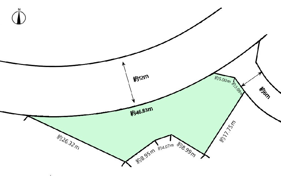 | 道路 | 東6m、北12m | 地域地区 | 第1種低層住居専用地域 |