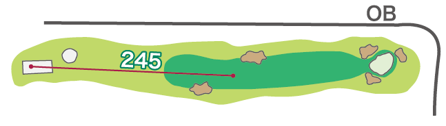 フェアウェイはストレスの少ないフラット&ワイド。遠くへ飛ばし2打目を有利に運びたい。
