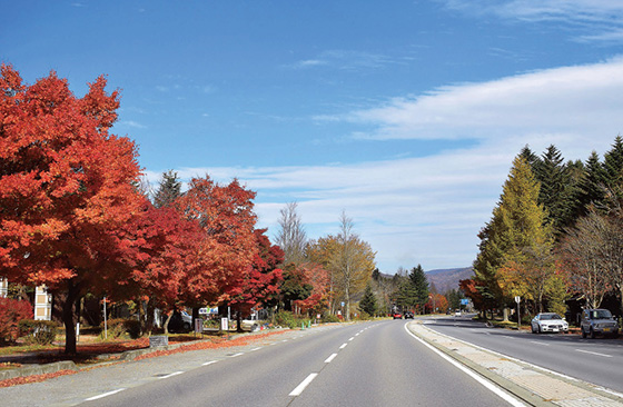 昼と夜の寒暖差が大きくなり空気がピンッと張り詰めてくると軽井沢の紅葉もいよいよピーク。碓氷軽井沢インターを出て新和美峠を越えプリンス通りに入ると、紅く染まったモミジの街路樹が出迎えてくれる。