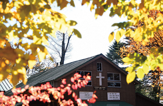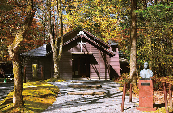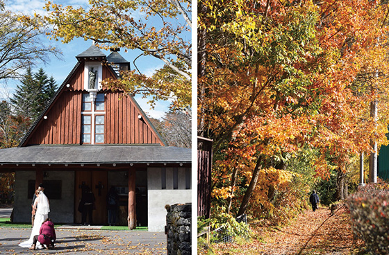 アメリカ生まれの建築家W・M・ヴォーリズが手掛けた[旧軽井沢集会場]や[ユニオンチャーチ]などの西洋建築様式の建物は、鮮やかな紅葉に包まれ深みのある風情を醸し出している。