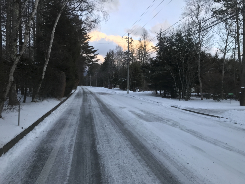 別荘地内のすべての道路の除雪は、今日一日で完了。