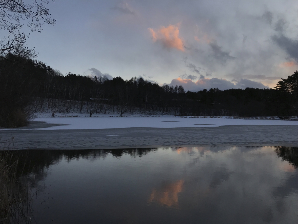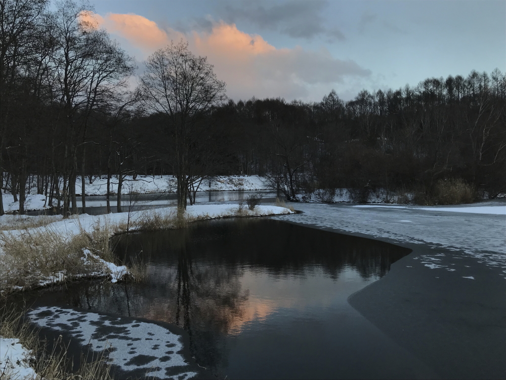 竜神池のほとりでは、静かに暮れる冬の景色が広がっていました。