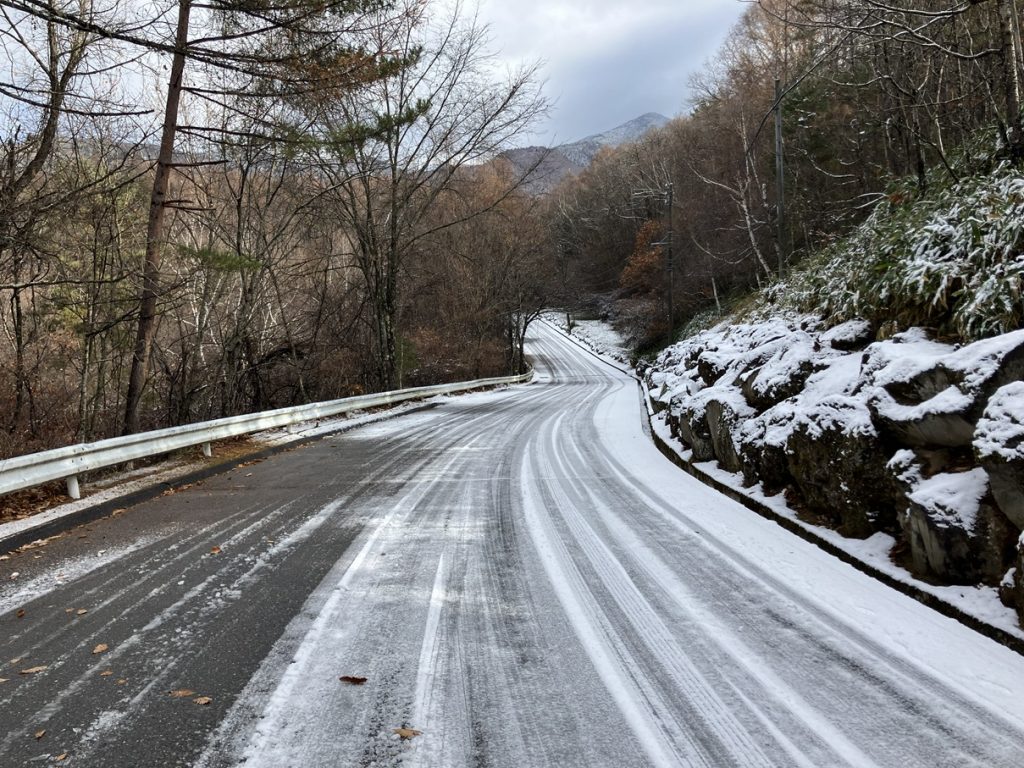 11月26日の朝には、標高の高い工区で道路がうっすら白くなっていました。