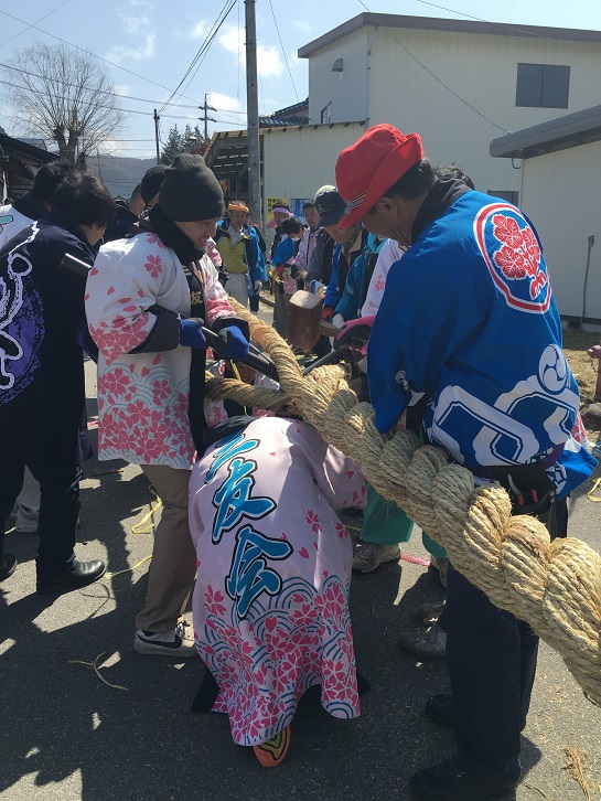 人の手によって大事に作られた綱は、4月の山出し、5月の里曳きに