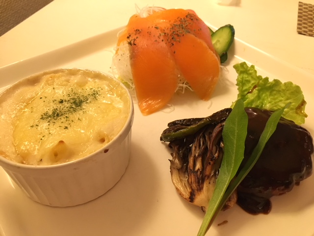 レディースランチはハンバーグとグラタンとサーモンサラダ☆