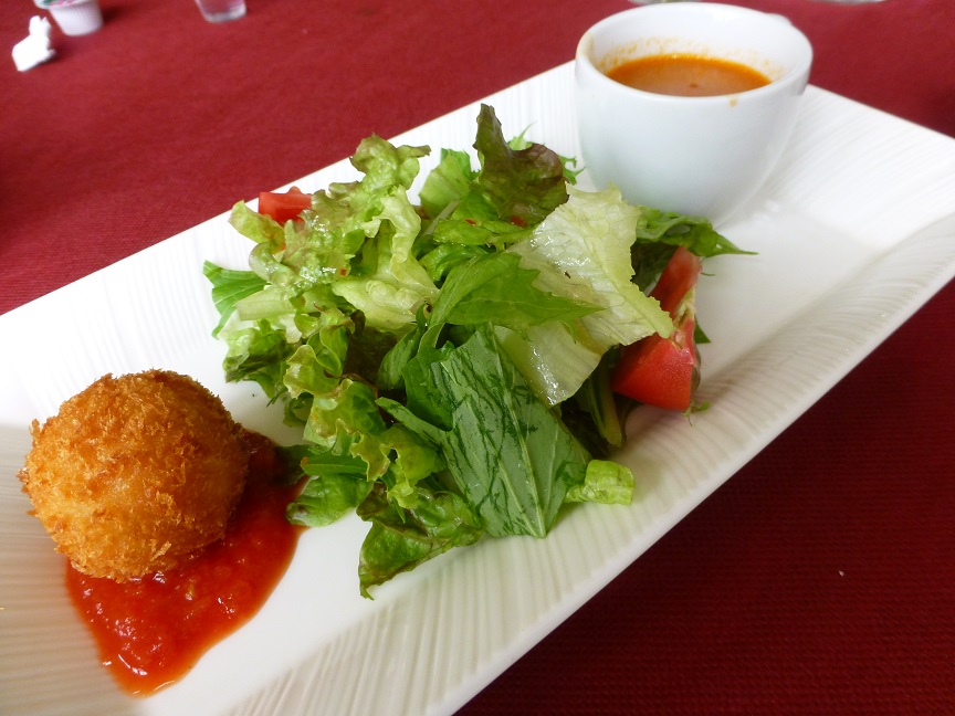 サラダ、ライスコロッケ、ミニスープが楽しめる ワンプレートです♪