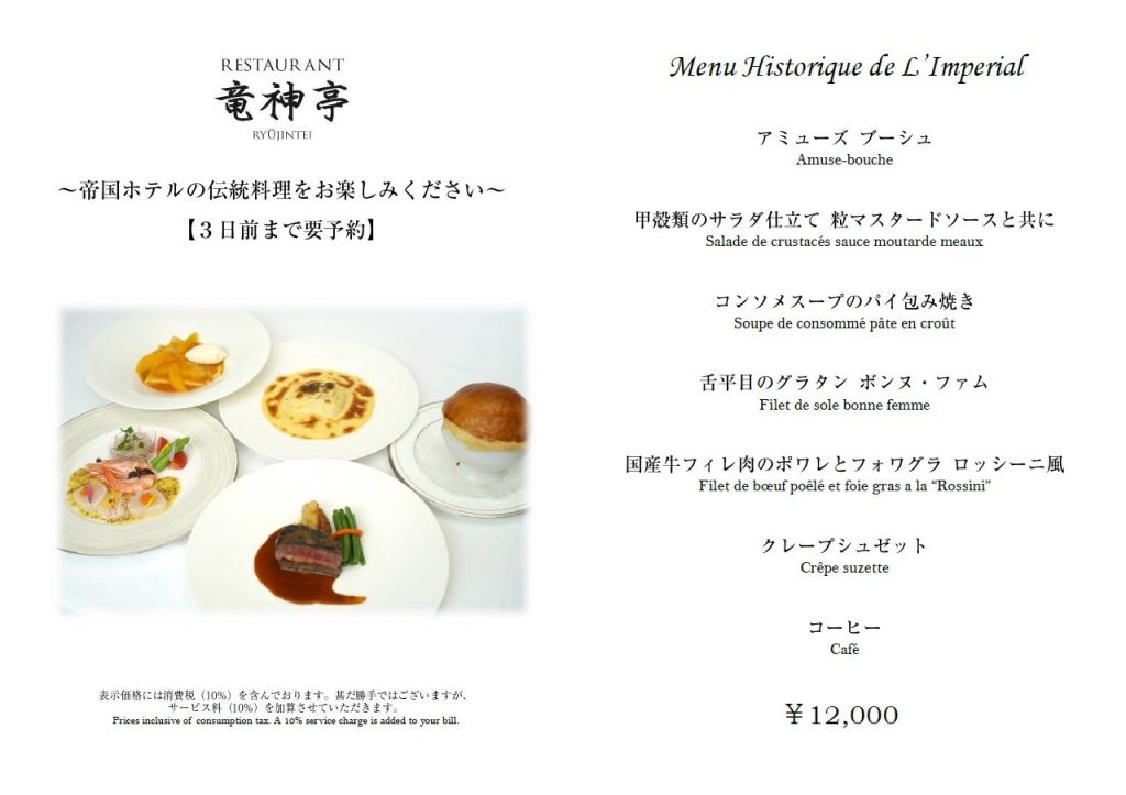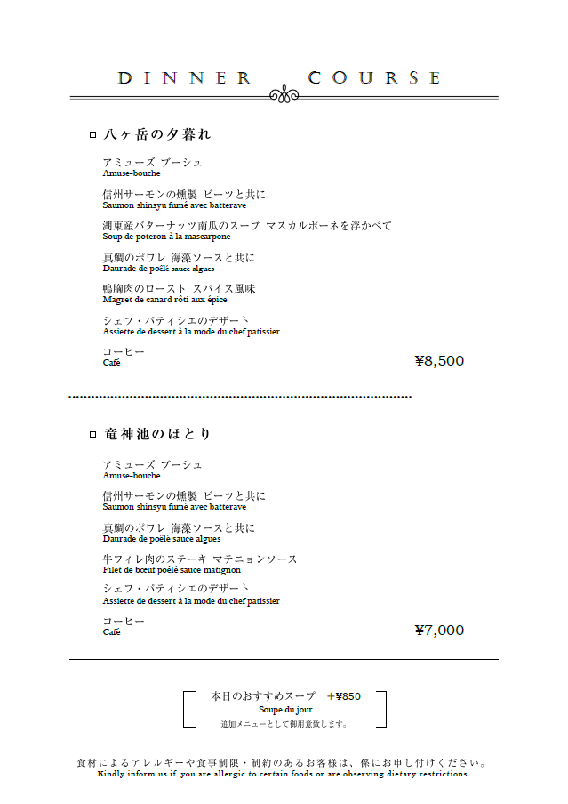 【トラディショナルメニュー(3日前までの要予約)】10月1日(土)からメニューが変更になります。
