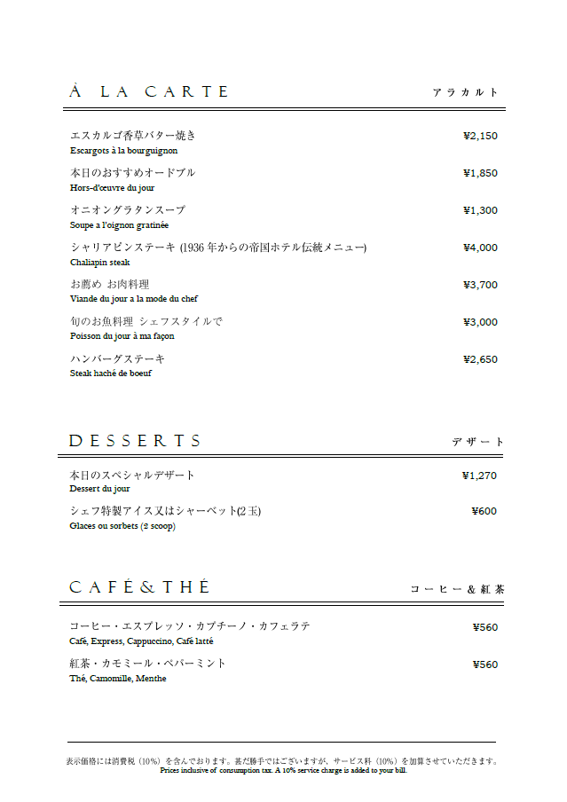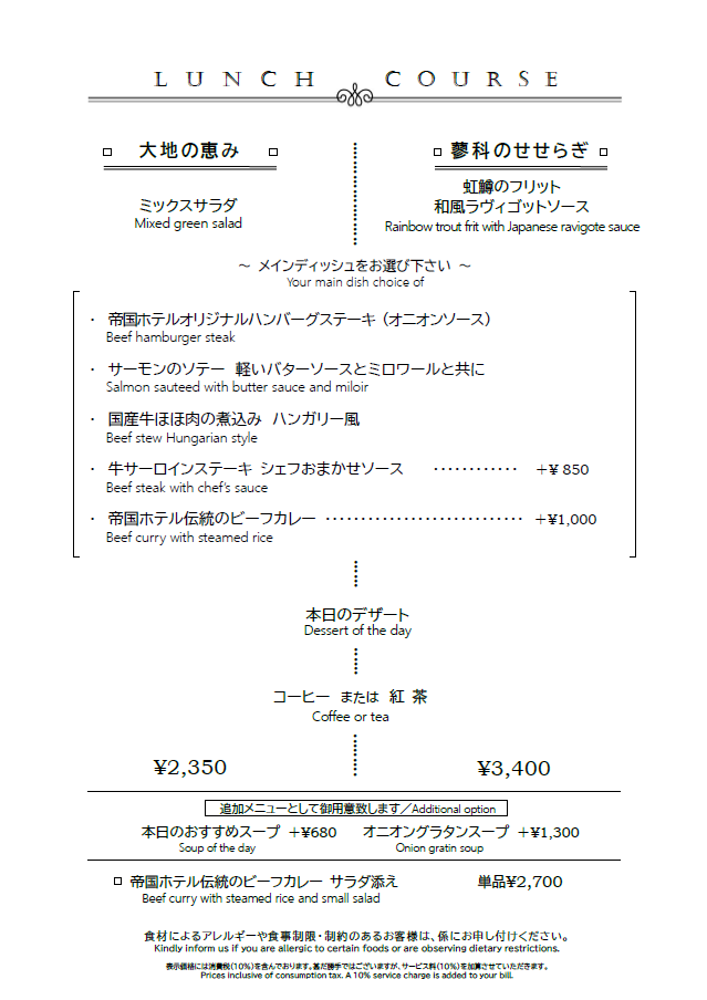 「レストラン竜神亭」11月からのランチ・ディナーメニュー