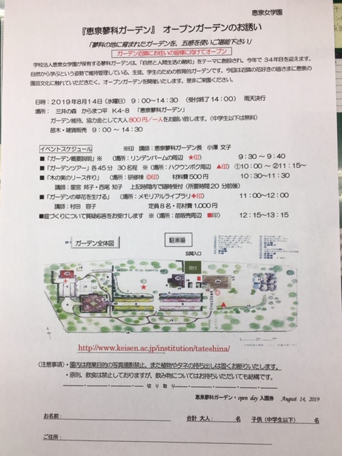 『恵泉蓼科ガーデン』オープンガーデンのお誘い☆