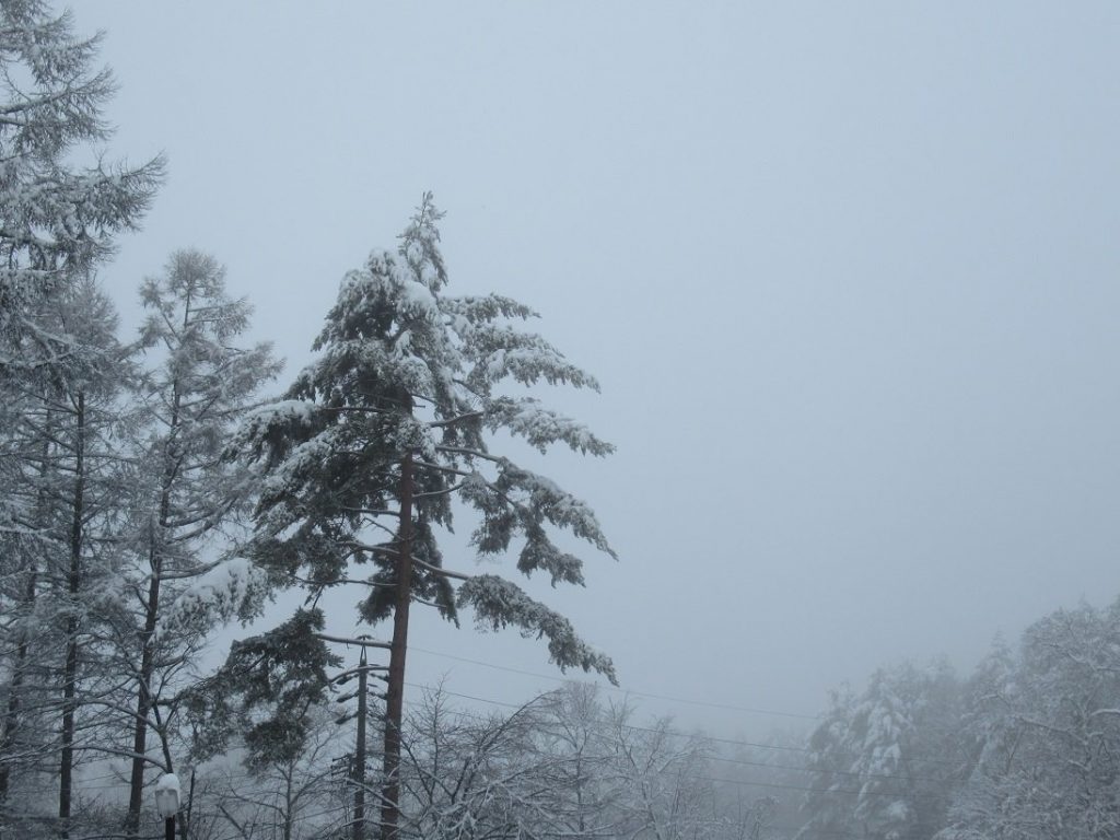 朝はうす暗く、まだ雪雲に包まれているような蓼科でしたが