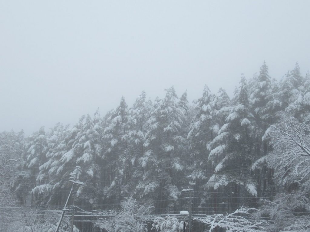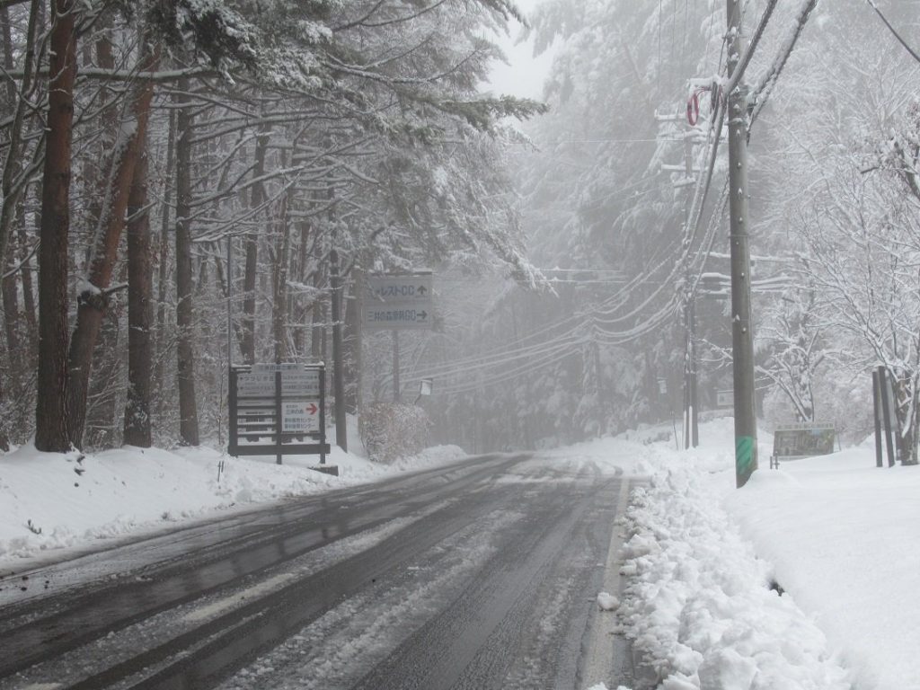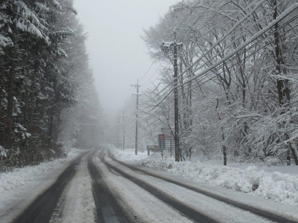 「かみ雪」と呼ばれるこの降雪は、水分を多く含んだ重い雪質です。