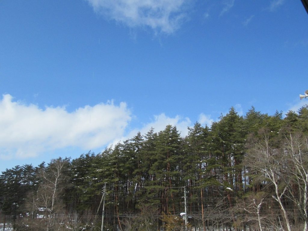 朝は真っ白だった周辺の木々も、雪がほとんど解けていました。