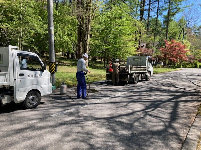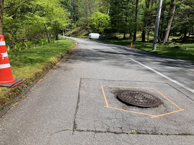 本日より、別荘地内の「アスカーブ・マンホール廻り舗装補修工事」を