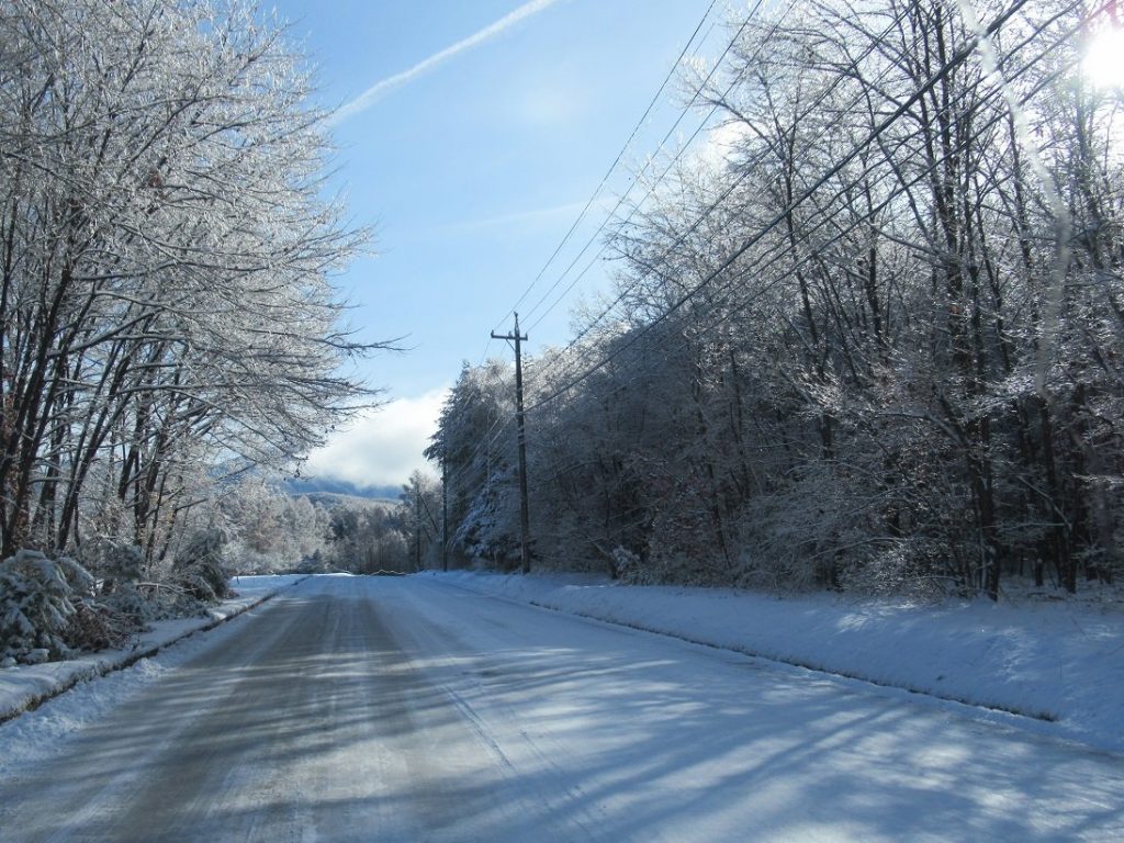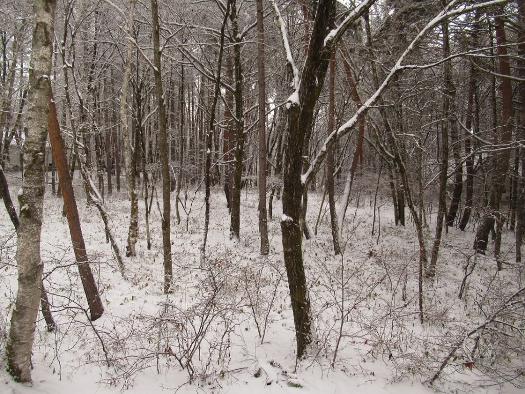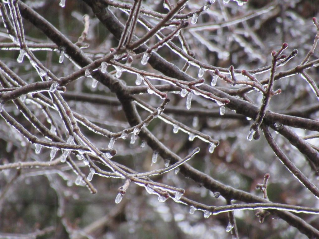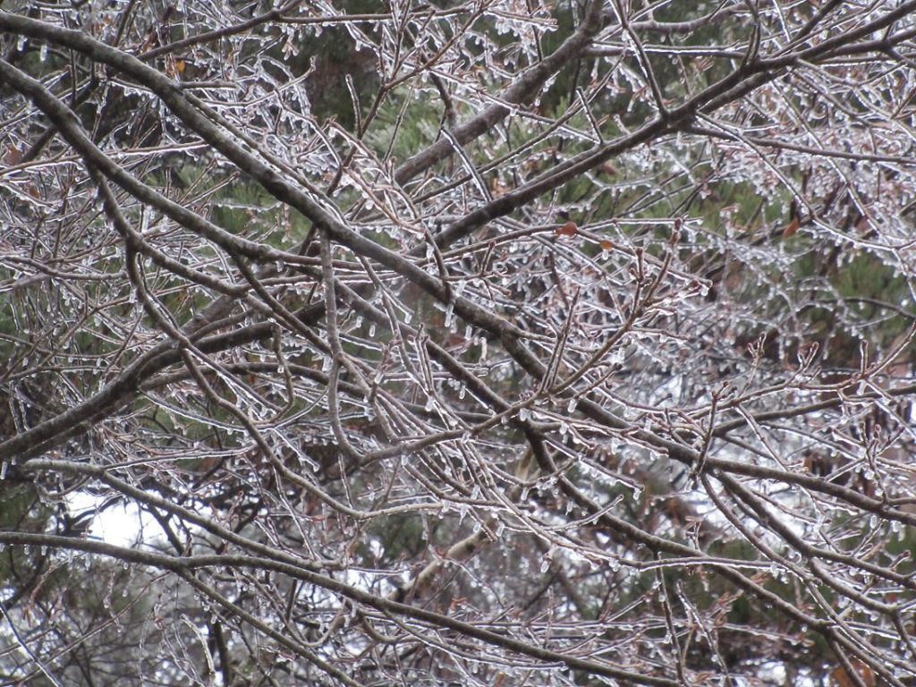 氷に包まれた木々が何とも寒々しく、これはさらに冷え込みそうだと思っているうちに