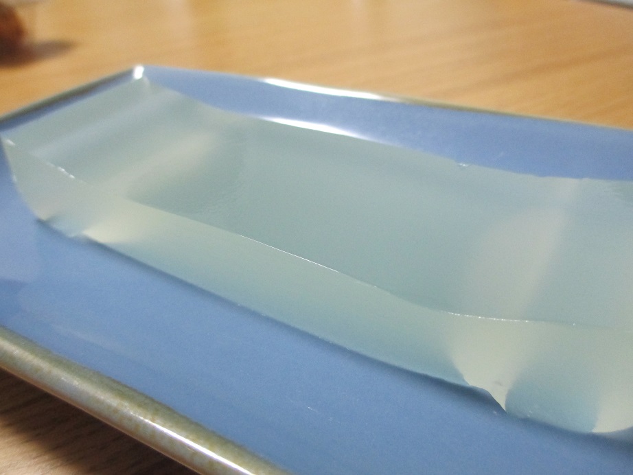 寒天の原料の天草を煮詰めて、型に流し、長細く切った物を