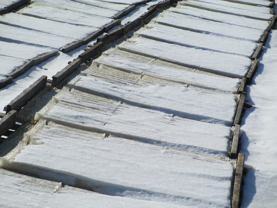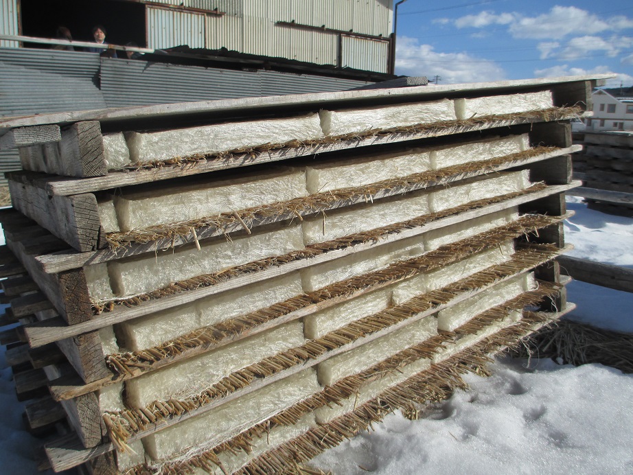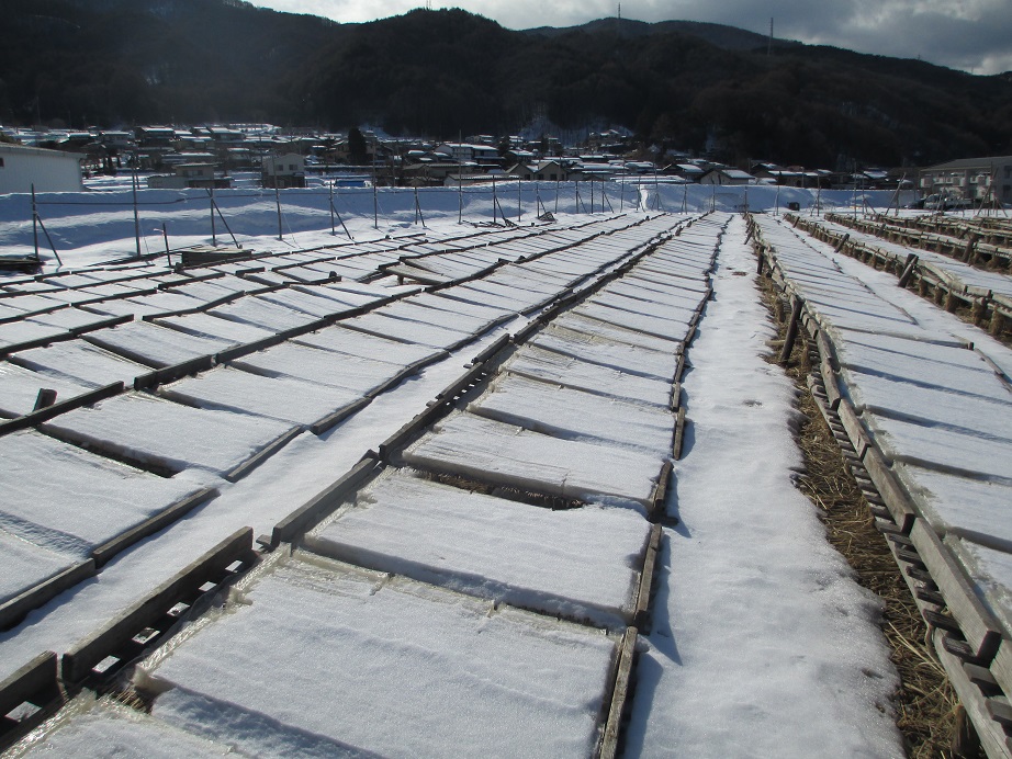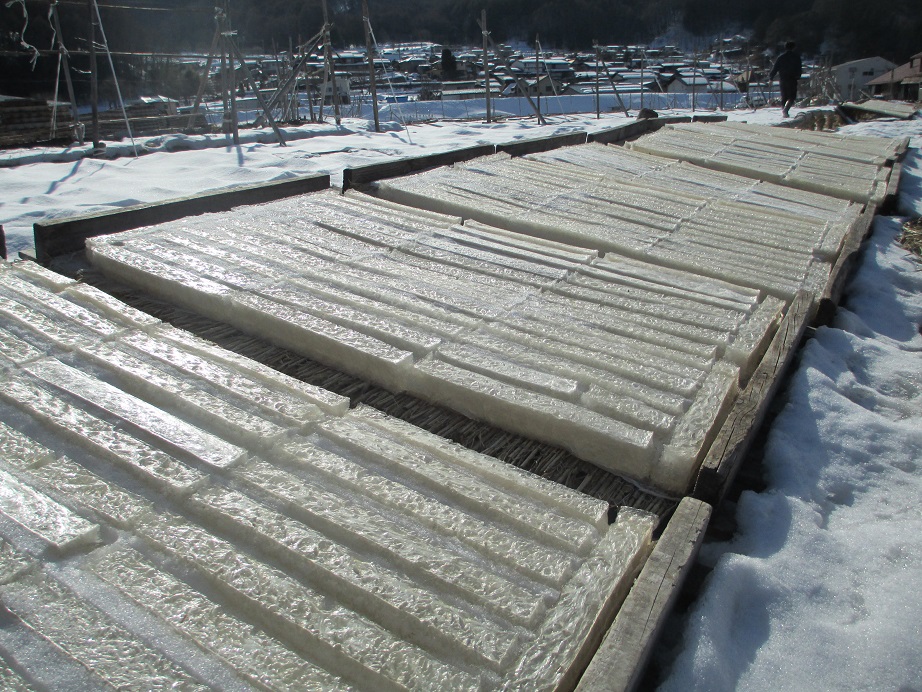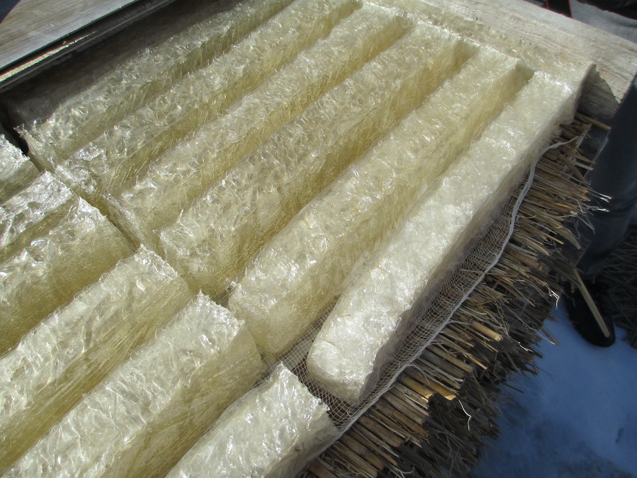 水分を持った寒天は、この寒さの中、何度も凍ることを繰り返さないと