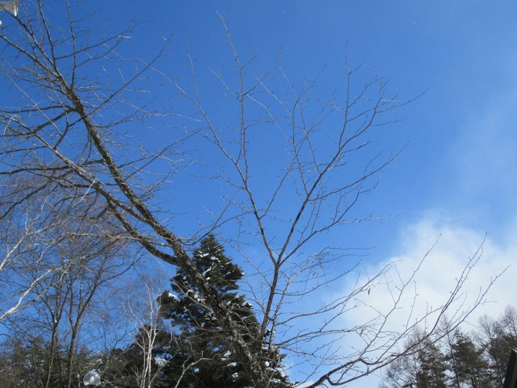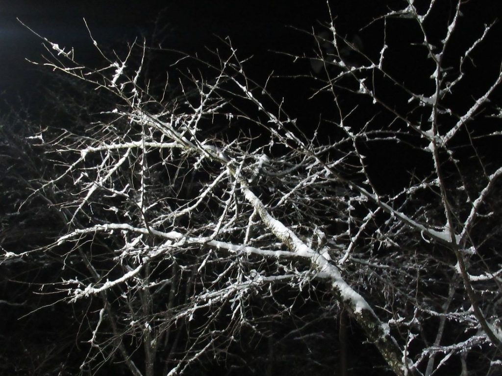 枝への着雪とそれが解けた雫の凍結で、一昨日の夜には小洒落た雑貨店のオブジェのようだった