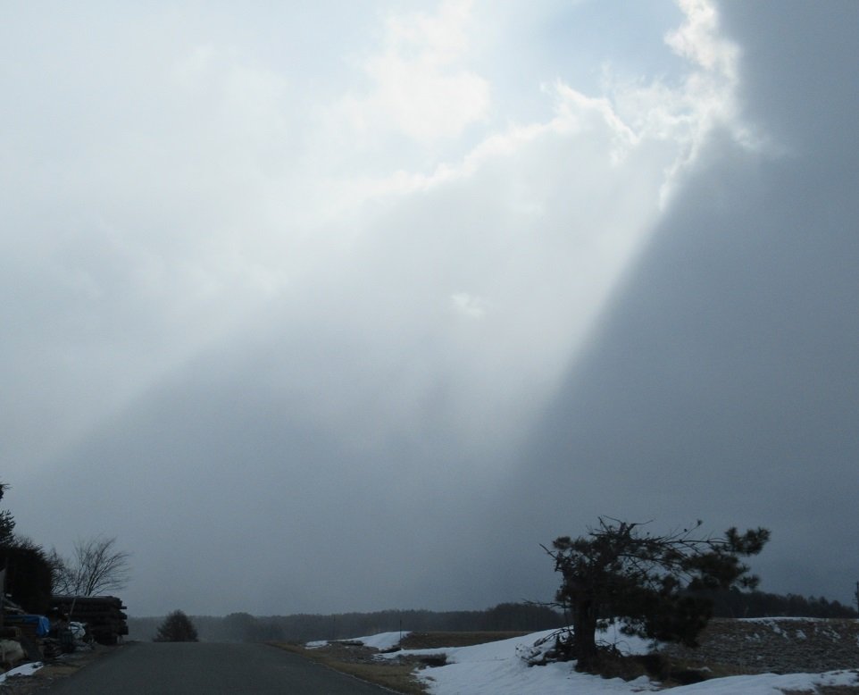 9時ごろ、雪雲が通り抜けざまに一瞬、吹雪となりました。