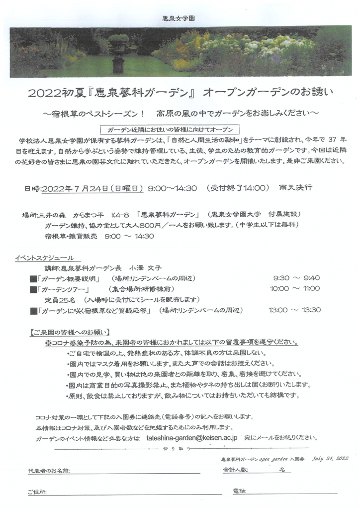 2022夏『恵泉蓼科ガーデン』オープンガーデンのお誘い