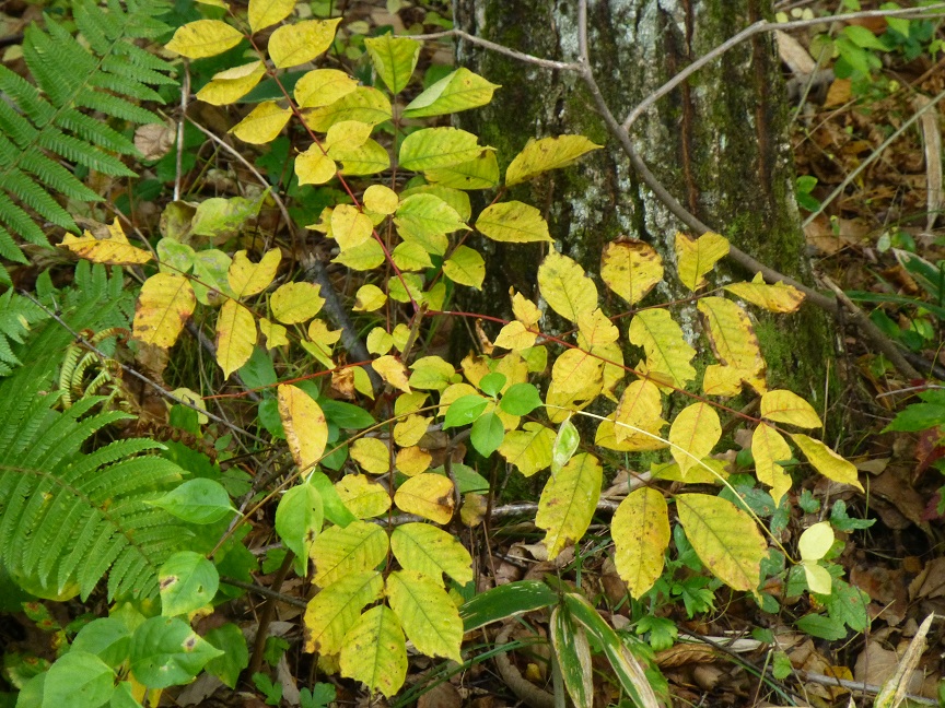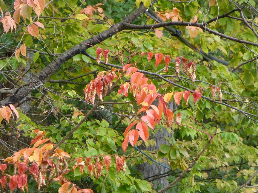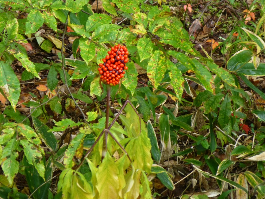 色づき始めた木の葉も、冷たい雨にしっとり濡れています。