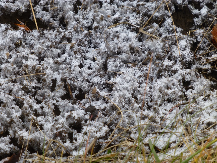 霜柱の上に、雪がうっすら積もった景色が広がっています!