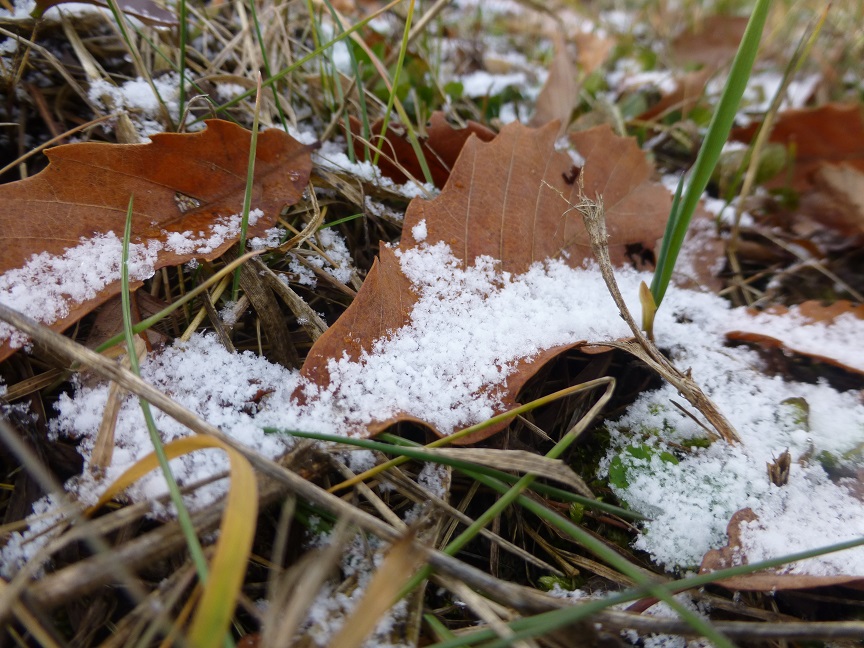 管理センター周辺の落ち葉には、初雪がうっすら積もっています☆