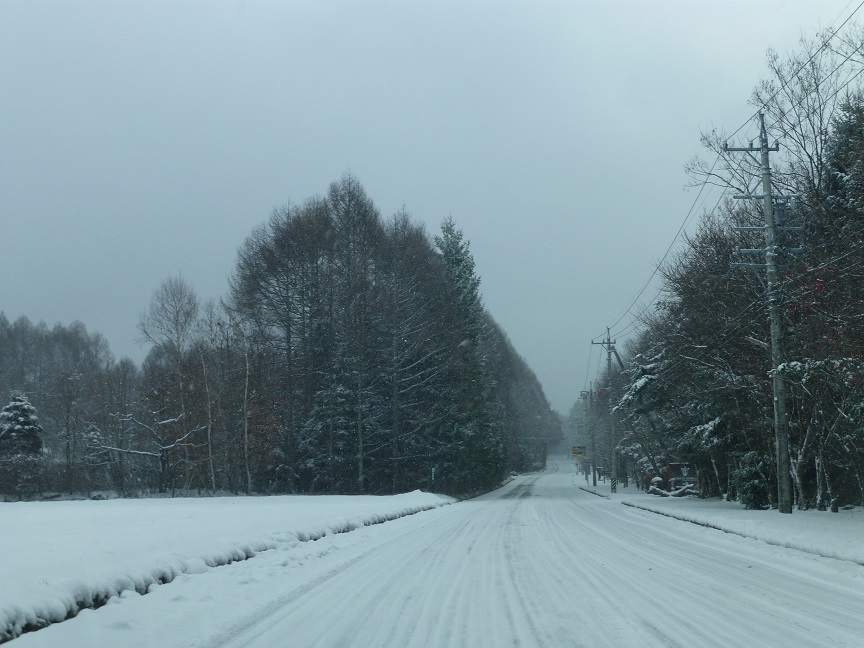 現在、別荘地内には、一昨日からの降雪で、10cmくらいの積雪があります。
