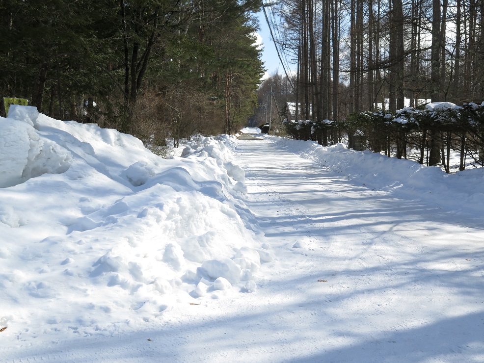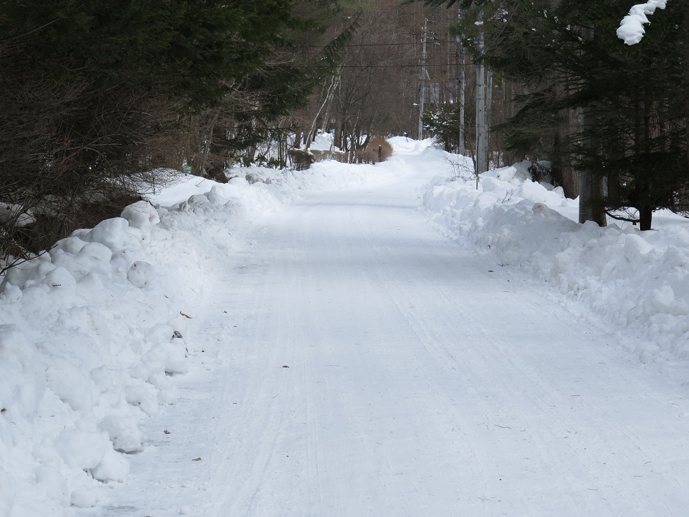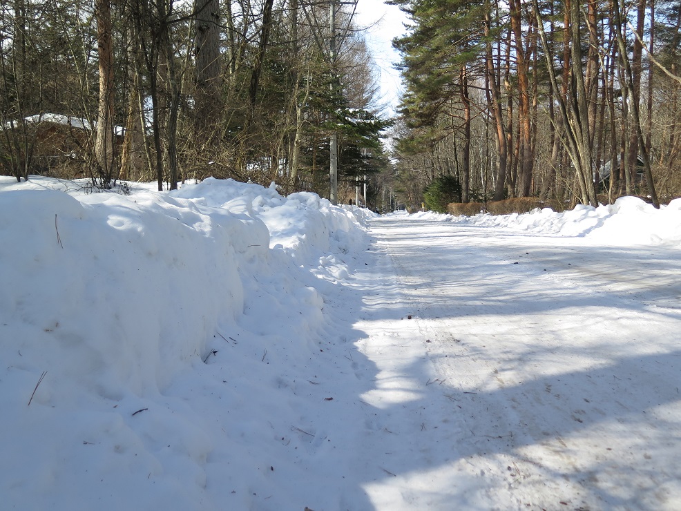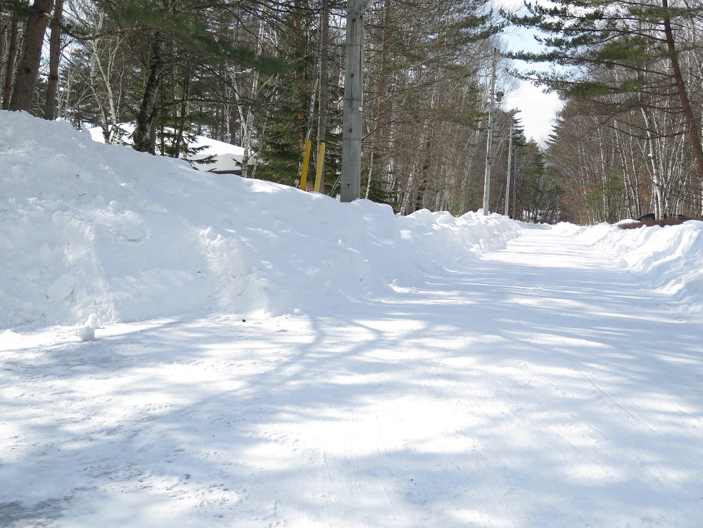 まだまだ春の訪れは程遠く、別荘地内にはたくさんの雪が