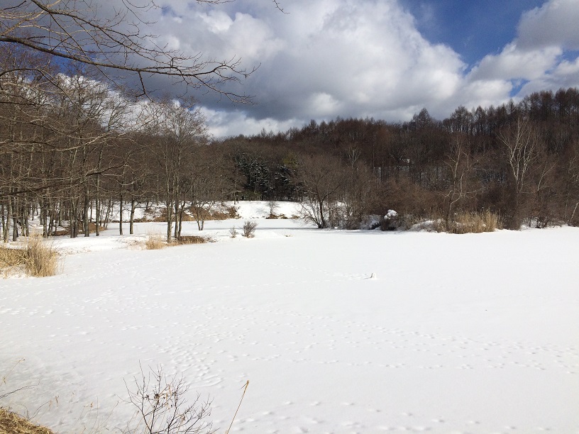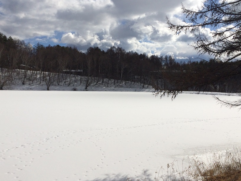 湖面にはたくさんの雪がのって、一面真っ白です。