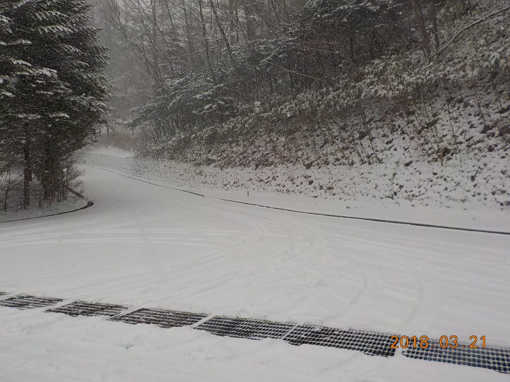 2018.03.21 雪が降っています! みぞれ混じりの雨から一転、本格的な降雪になりました。細かな雪が降り続いています。 13時現在、7cmほど積もっています。 これから、順次別荘地内の除雪作業に入ります。