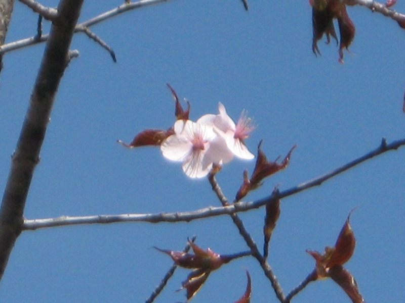 一昨日ころより管理センター前のヤマザクラも咲き始めました。