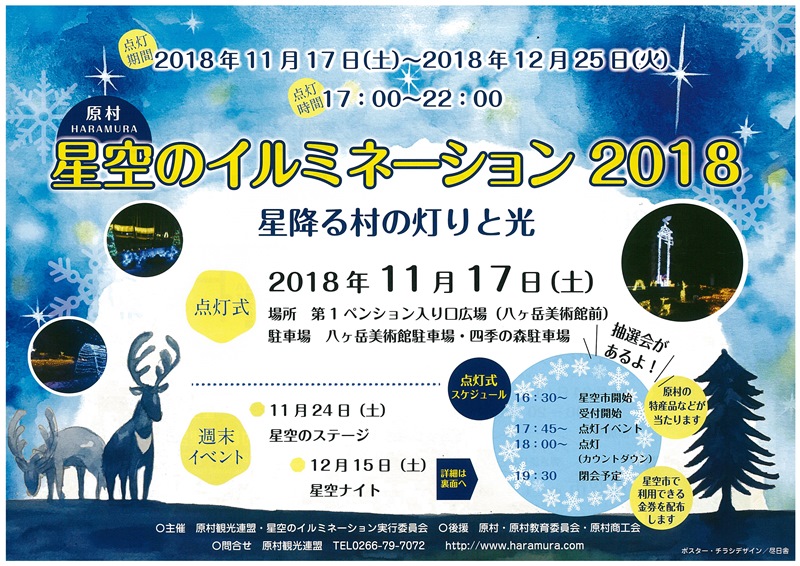 明日は、点灯式 があり、原村の特産品などが当たる抽選会もありますよ♪