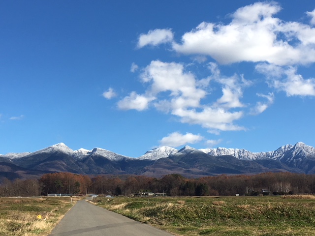 先日、雨が降った日、八ヶ岳は雪が降り頂上が白くなっていました。