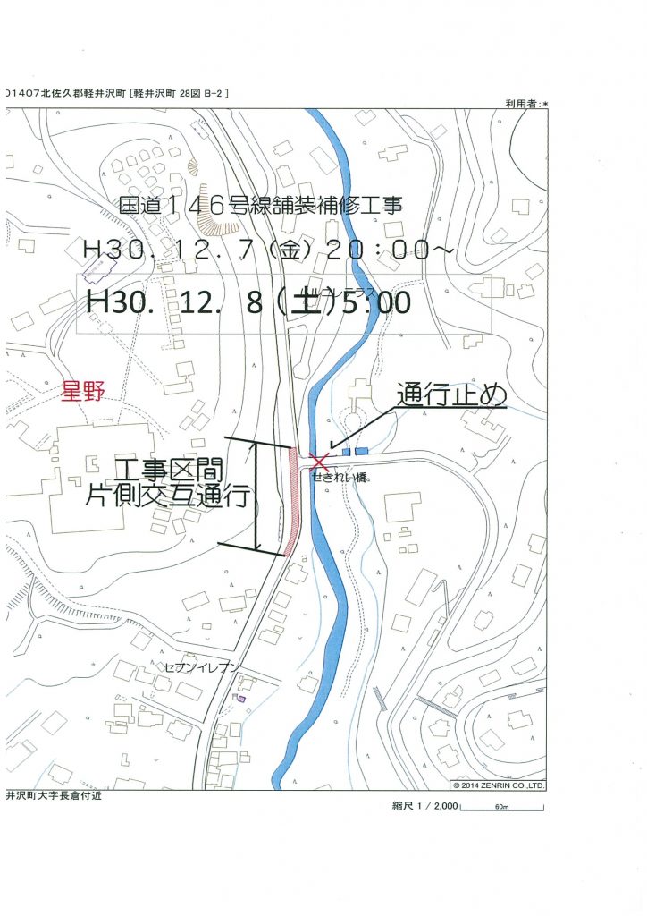 国道146号線は片側交互通行、せきれい橋は車両通行止めになります。