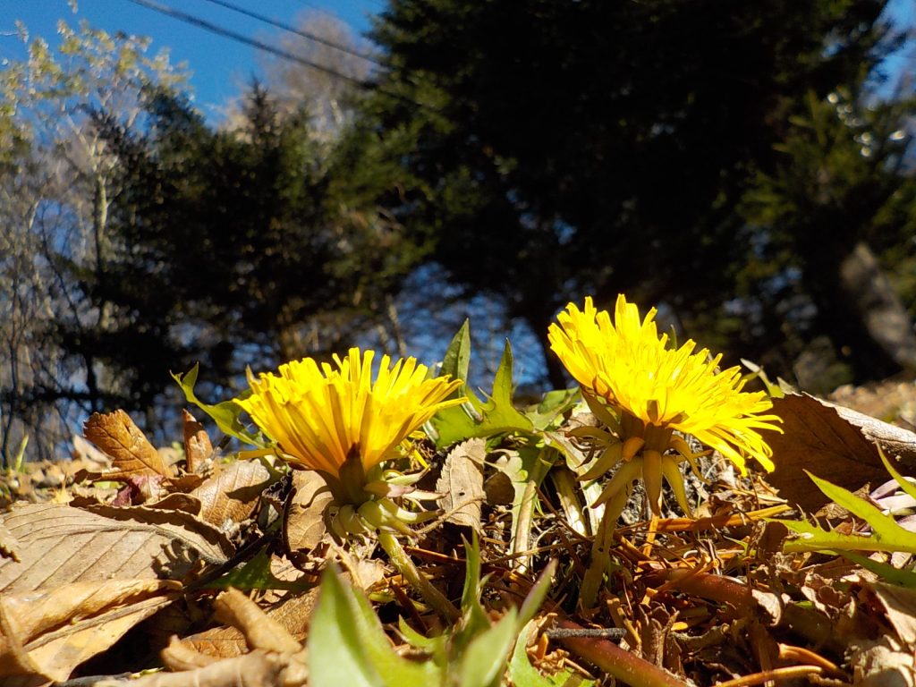 管理センターの土手に季節外れのタンポポが咲いていました。