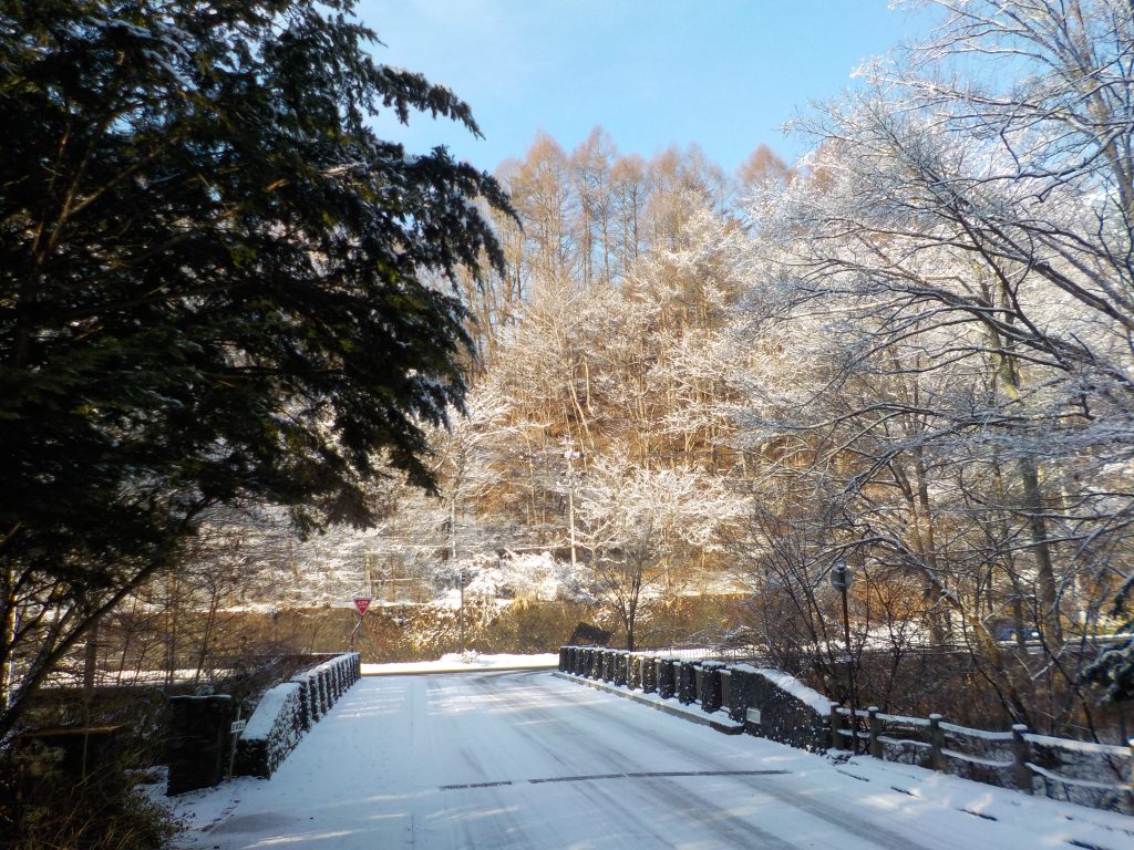 軽井沢は、昨晩から雪が降り始めました。