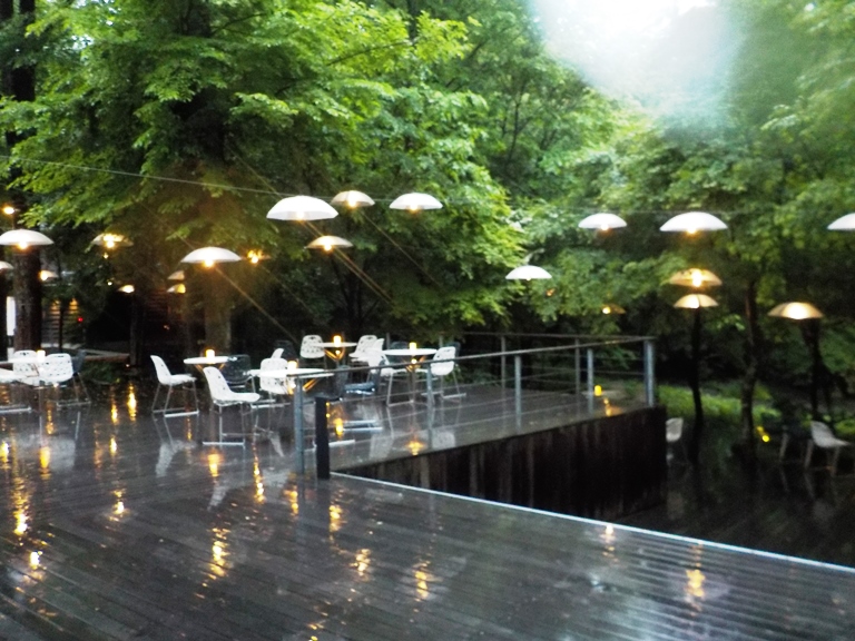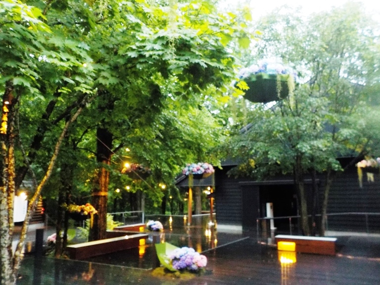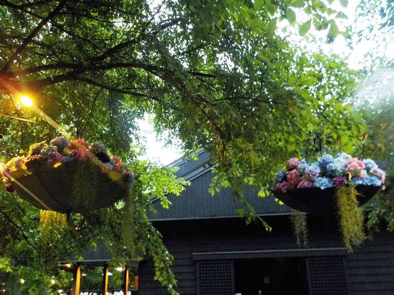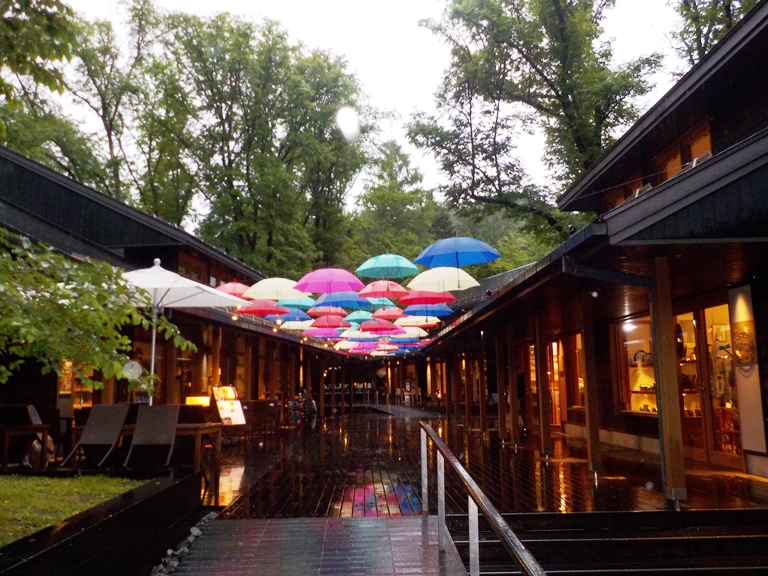 梅雨の季節も楽しむべく、只今ハルニレテラスで開催中の「軽井沢アンブレラスカイ2019」