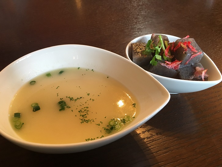スープは、程よくパクチーが効いていて飲みやすいです。