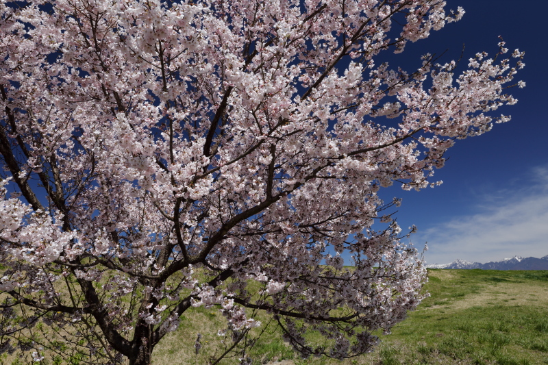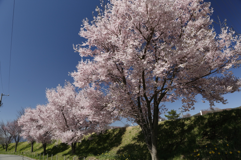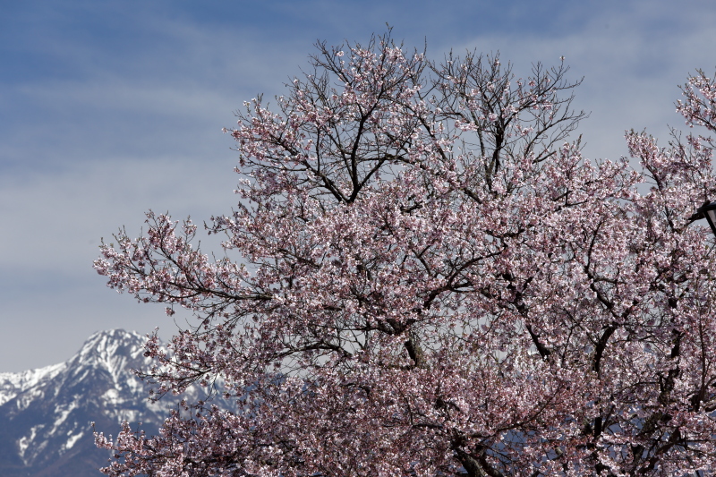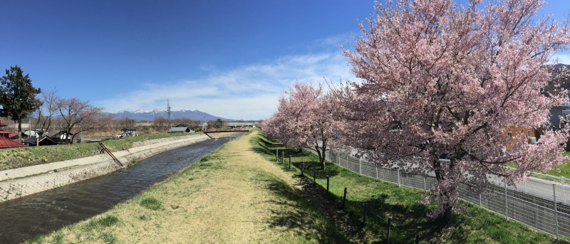 御柱の「川越し」で有名な宮川の堰堤付近はほぼ満開でした。
