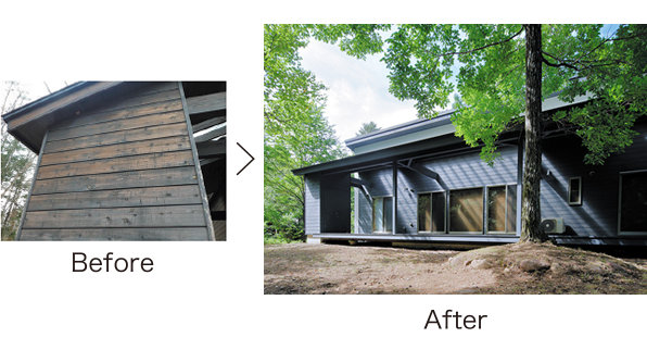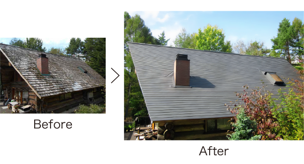 ウッドシングル葺き屋根をガルバリウム鋼板で重ね葺き。