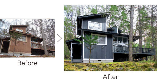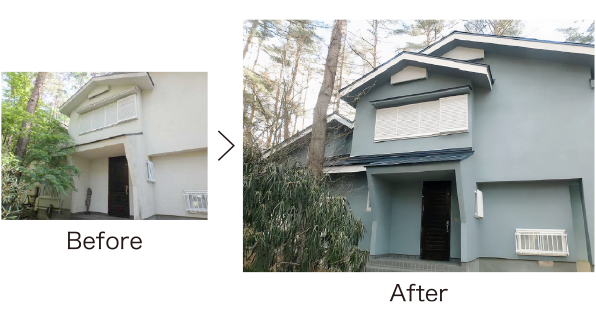 外壁カラーを変えてイメージチェンジを図った再塗装事例。漂白洗浄し丁寧に塗り直すことで新築の輝きを再現。