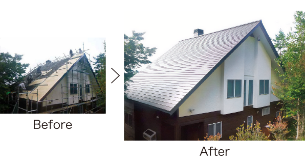 雨漏りを起こしていたアスファルトシングルの屋根を、ガルバリウム鋼板にて重ね葺き。