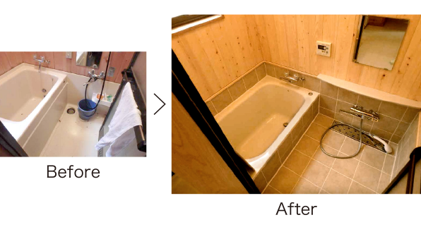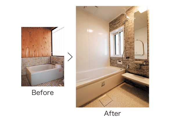 ひんやり感を軽減するサーモタイル貼りのハーフユニットバスに交換。下地に断熱材を入れ、床下からの冷気を遮断。