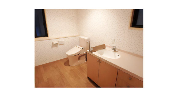 納戸スペースをリフォームし、広々としたサニタリースペースを創出。子供からお年寄りまで安心して利用できる安全性を確保。