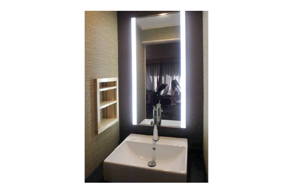 床面積を広げ、スイートルームを彷彿させる洗面化粧室に一新。タッチレスの水栓、LED照明など先進かつ機能的な設備を導入。