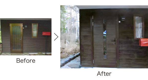 冷気が侵入しやすい金属製のドアを断熱木製ドアに交換。室内の暖気流出を防ぎ、外部からの冷気を遮断。