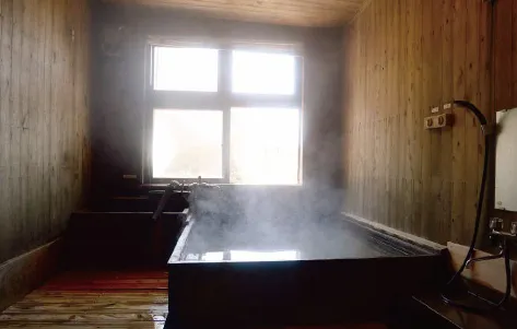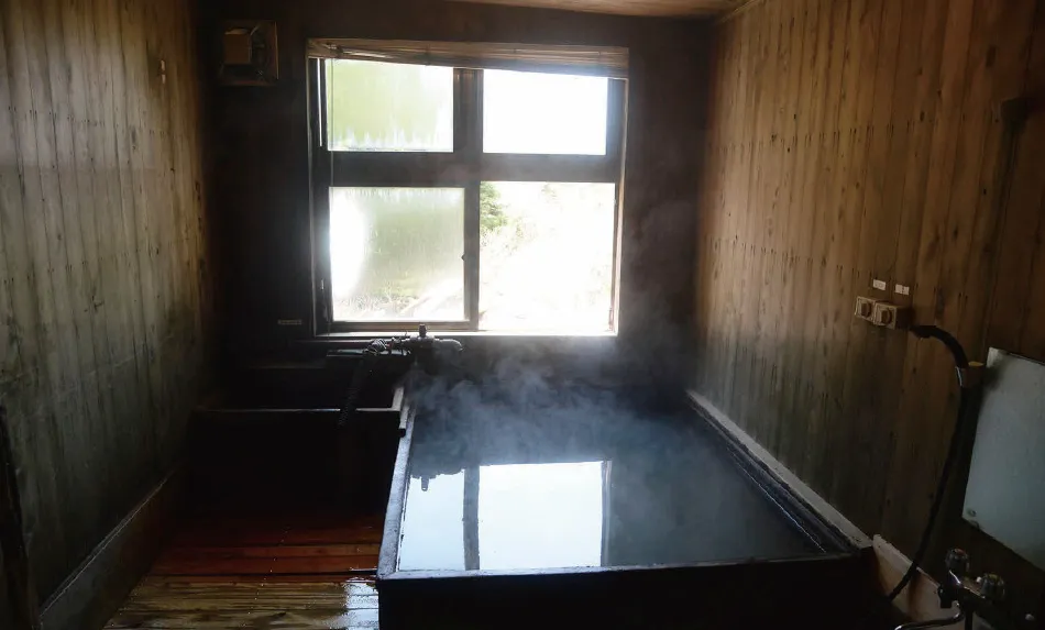 ほのかに硫黄臭が漂う木造りの浴室、薄い黄褐色のお湯、窓から差し込む鈍い光。これを秘湯と言わずして何と言うのか。こんな山深い鉱泉宿まで、『蓼科高原三井の森』から車&徒歩で約1時間の道のりとは、なんとも不思議な気分だ。桜平ゲートから自分の足で歩かないとこの湯には浸かれないところが、秘湯ムードを高めている。