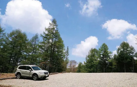 山岳ドライブを楽しみながらダート道を進んでいくと分岐点から4kmほどで桜平ゲート前の駐車場に到着する。トレッキングシューズの靴紐をしっかり締め、飲み水と湯上がり用の着替えを入れたリュックを背負い、ゲートの先の登山道へ。標高は約1,900m。眼前に「峰の松目」の頂が迫り、八ヶ岳の懐深くまでやってきたことを実感する。