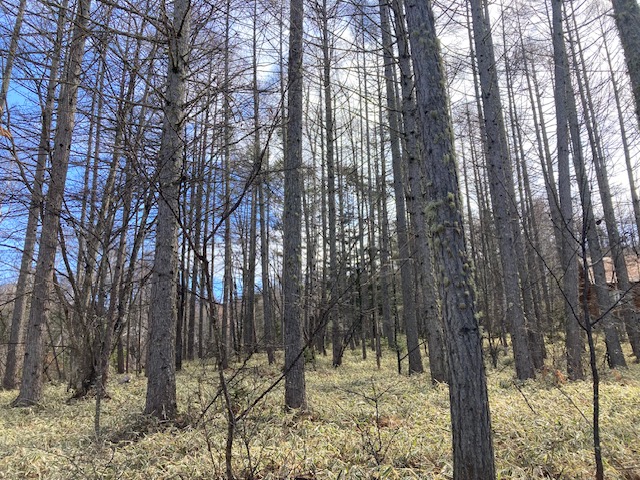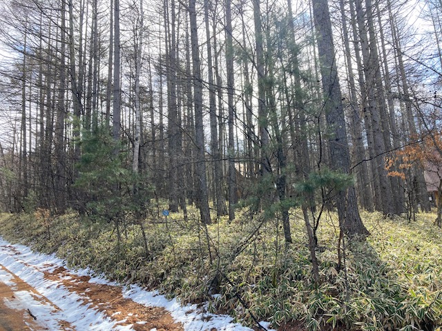 標高約1,580m、カラマツ林内の西緩傾斜地。