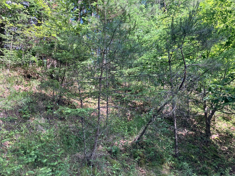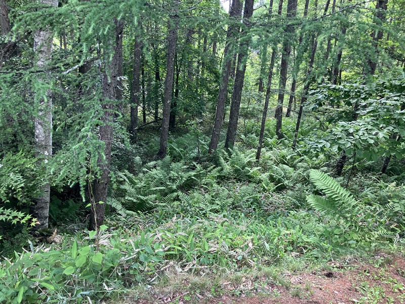 カラマツ・シラカバ林内の南西方向に開けた明るい敷地。